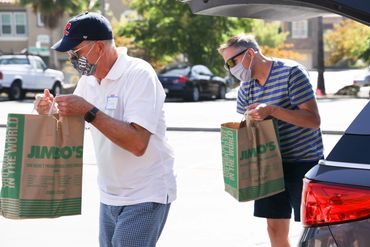 Happy recipients of one of the Thanksgiving food bags from the Torrey Pines High School Men's Lacrosse Team.